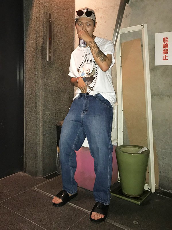グラフィティプリントされたTシャツとサンダルで夏感もいいかんじに出したコーデになりました!!