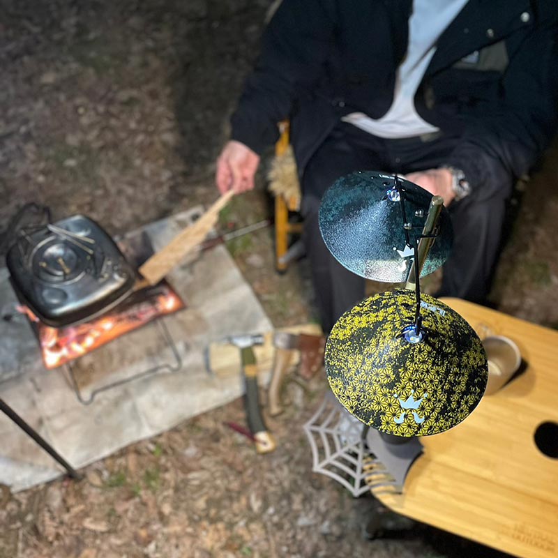 キャンプなどのアウトドアシーンでも、家でくつろぐ時の間接照明用としても最適なフェイクレザーのランプシェード。