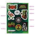 ハイエストマウンテンのロゴやアートワーク、マイジャのロゴ、KINGSIZEのグラフィックをデザインしたA4サイズのステッカーシート!
