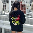 90年代に出会ったジャマイカンカルチャーをグラフィックやタイポグラフィーで落とし込んだインパクト抜群のプルオーバーパーカ。