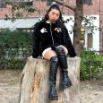 インナーにはGALFYのキラキラわんこが可愛いロンTee、頭にはこの冬でもあったかいTRAPPER HATを使用!