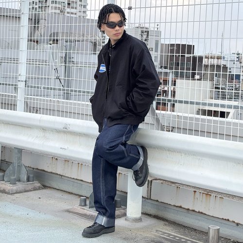 背中に大きく切り替えが入ったベンチレーション仕様。着用時の熱やムレを逃がすために設けられ、上パーツと下パーツのつなぎ部分にポリエステルのメッシュを配することで通気ができるようになっています。右胸にサークルロゴワッペン、左袖口にHiGEロゴ刺繍をオン。ヘビーウェイトが良いけどムレるのは嫌や!そんなアナタにオススメの快適に着用できる逸品!