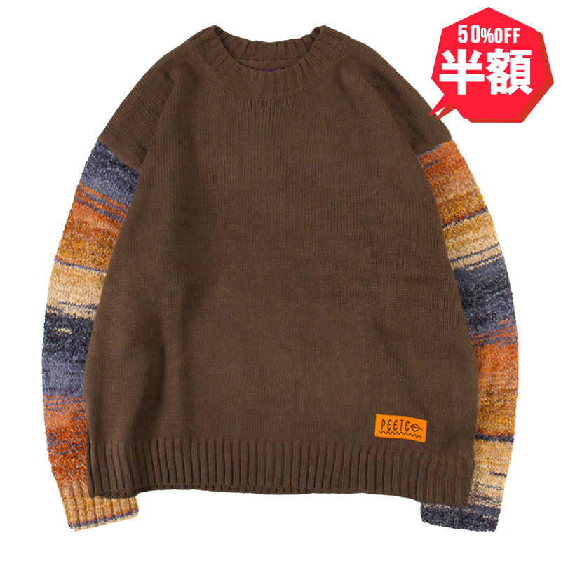 【半額】PeeTee. (ピーティー) “GRADATION SLEEVE CREW KNIT” [PTSS25-T06 Brown]