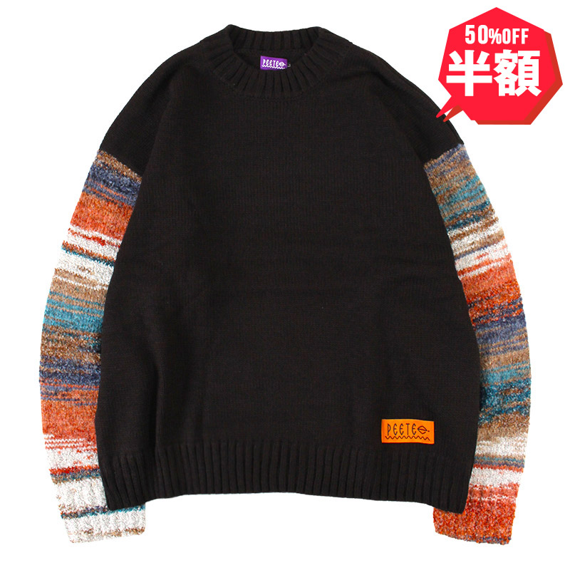 【半額】【ラストLのみ】PeeTee. (ピーティー) “GRADATION SLEEVE CREW KNIT”