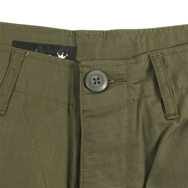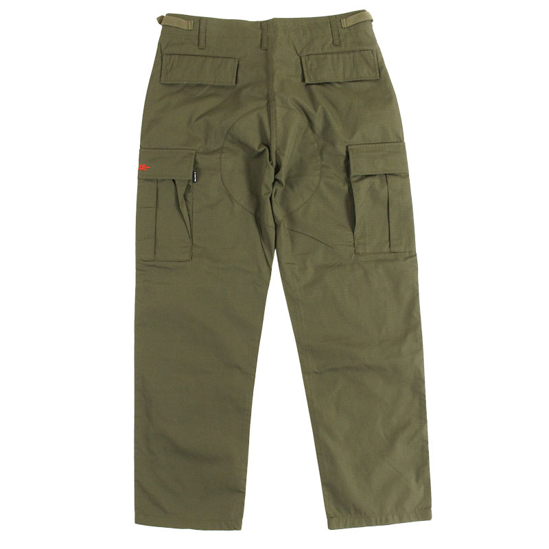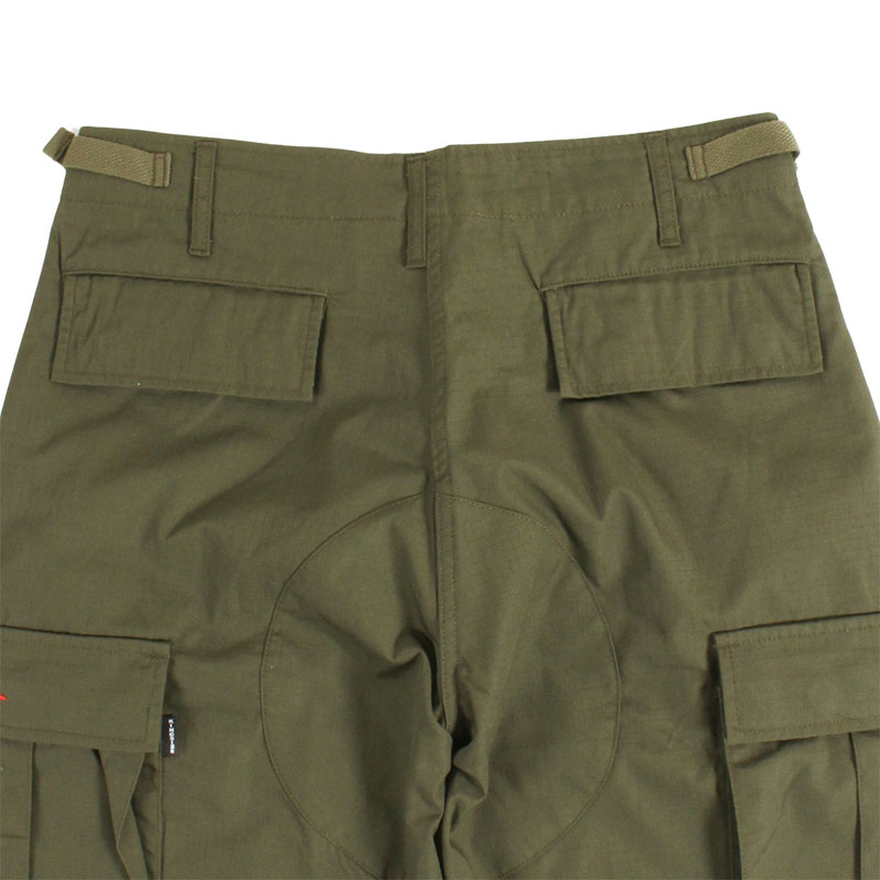耐久性のあるリップストップ生地を使用したカーゴパンツ。ミリタリーテイストのオリーブカラーが様々なスタイルに大活躍する一本。腿から裾にかけてスリムになったシルエットで、裾口のドローコードで調節可能。マチ付きの大きなサイドポケットやウェストを微調整できるサイドアジャスター、ボタンフライ仕様などオーセンティックな仕上がり。左サイドのラストロゴ刺繍とタブがアクセントに。XSからXLまでのサイズ展開でユニセックスでオススメのアイテム。