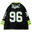 光沢感のあるポリエステル素材を使用したホッケーシャツ。袖口のラインやバックのナンバリングなどスポーティーな雰囲気の一枚。フロントにドゥーラグをかぶったおなじみのワンちゃんを刺繍したウェッサイなデザインのアイテム。ゆったりとしたシルエットに存在感抜群のグラフィックスを散りばめたストリートスタイルに大活躍するユニセックスでおすすめのアイテムです。