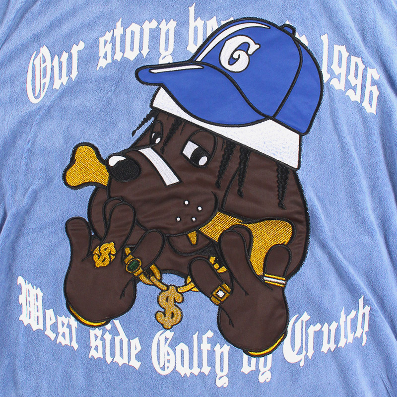 ヒップホップカルチャーを落とし込んだデザインが存在感抜群のセットアップ。フロントとバックの大胆なグラフィックが、90年代のウェッサイな雰囲気でストリートスタイルにマスト。ジャケットは半袖仕様で、春夏シーズンに最適。パンツはサイドライン入りで、スポーティーかつスタイリッシュな印象に。ウエストはゴム仕様で、快適な着心地を提供。やわらかなパイル素材でリラックスして着用できるアイテム。セットアップでの着用はもちろん、トップスのみを使ったコーデやパンツのみを使ったコーデなど様々なスタイリングが楽しめる一着。