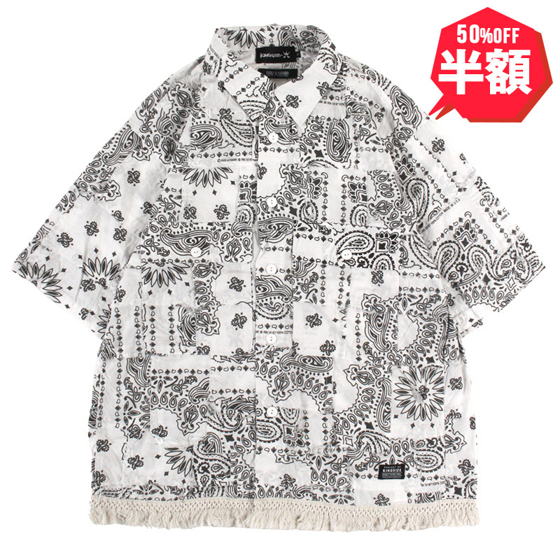 【半額】【ラストMのみ】KINGSIZE(キングサイズ)“PAISLEY S/S SHIRTS” [KSSS25-T45 White]