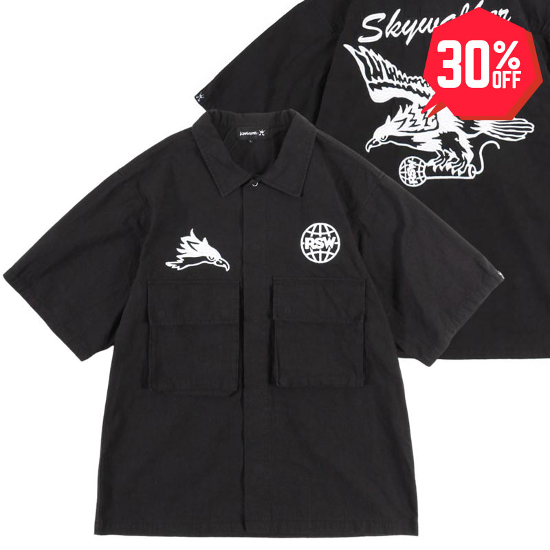 【30%OFF】KINGSIZE(キングサイズ)“x RYO the SKYWALKER COLLABO FATIGUE SHIRTS” [KSSS25-S07 Black]