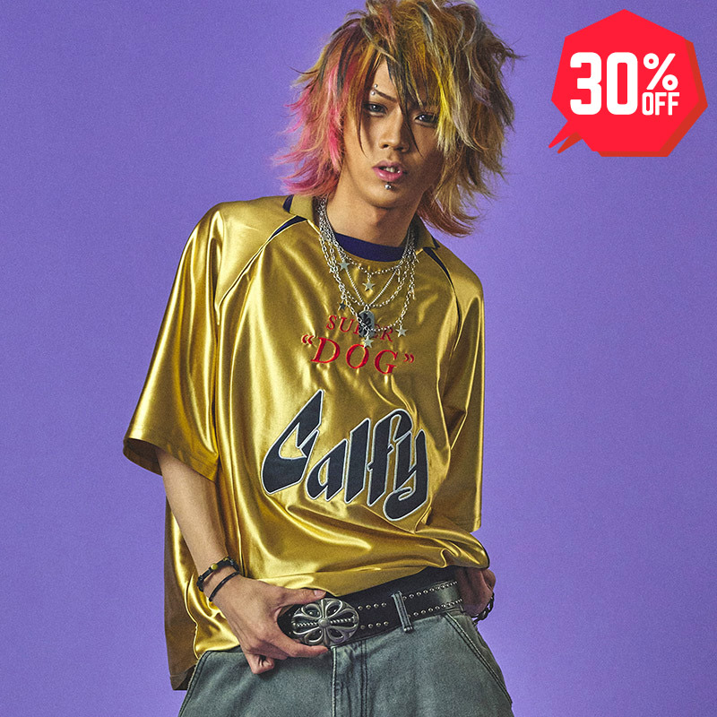 光沢感のある素材が清涼感ある仕上がりの売り子ユニ。スーパーでドライなおなじみのワンちゃんをバックにオンした存在感抜群の一枚。サマーシーズンに飲みたくなるようなデザインがGALFYらしい遊び心ある仕上がり。ストリートスタイルにマストな女性にもおすすめのユニセックスアイテムになります。