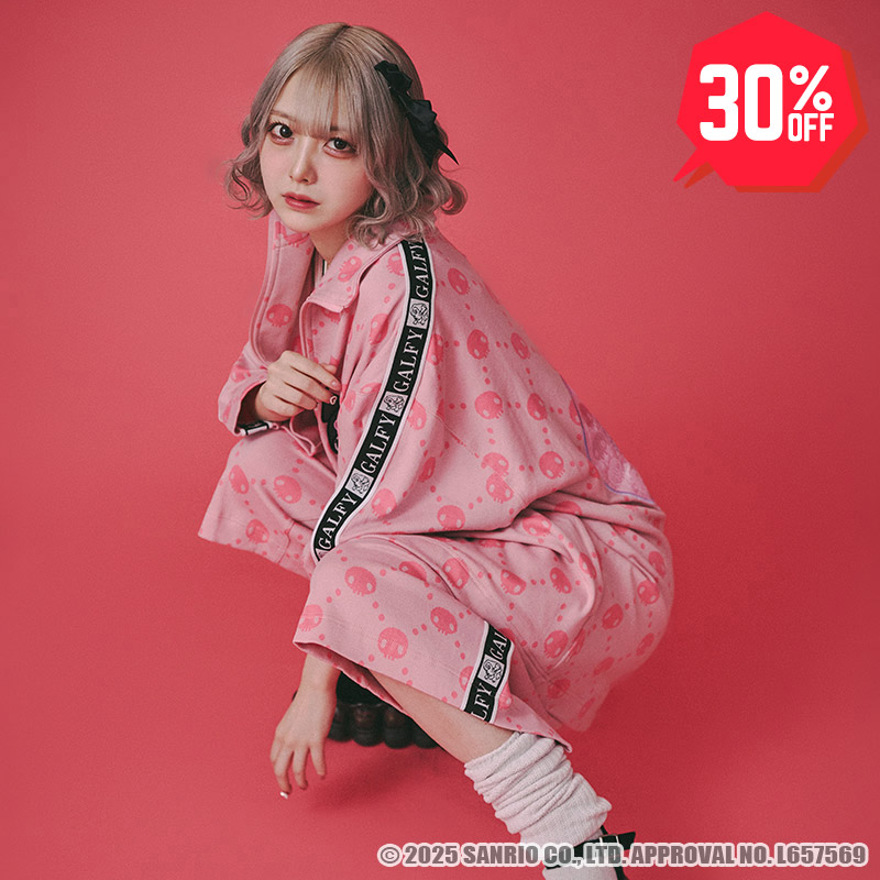クロミちゃんのトレードマークのドクロをふんだんにあしらったジャージ・セット・アップ!