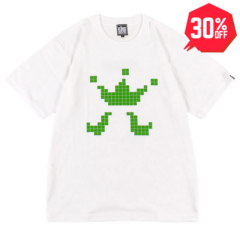 KINGSIZEのアイコン“HIGEロゴ”を、80年代を彷彿させる8bitスタイルのレトロゲーム風のドットアートでアレンジしたグラフィックTシャツ。BACKはフロントカラーと同色のドットなBOXロゴが施されております。シンプルながらもインパクト抜群なデザインでストリートにもポップにも振れる、遊び心満点の一枚!