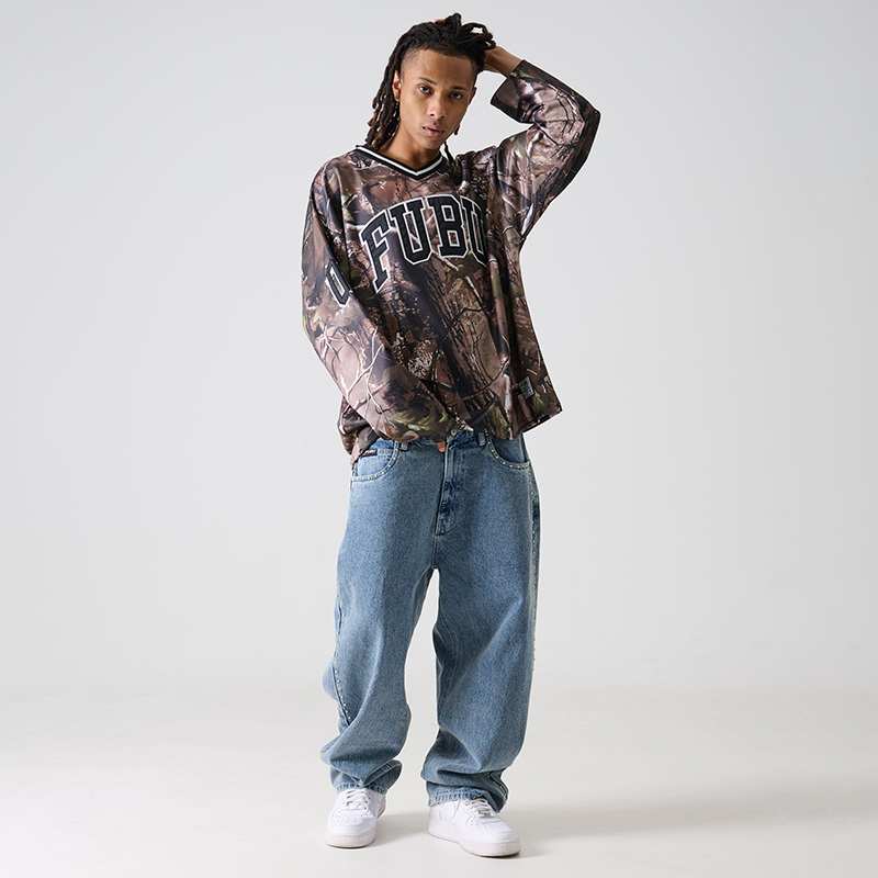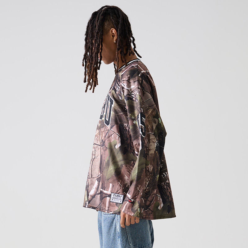 リアルツリーカモが存在感抜群のVネックのホッケーシャツ。
