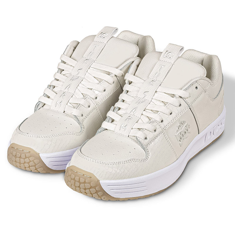 「LYNX ZERO」のアッパーにDC SHOESのアイコニックなヘリテージモデルである「LYNX OG」のアウトソールを融合させたハイブリッドモデルである【LYNX GRIMEY】が登場!スネーク柄の型押しレザーとシボ感のあるレザーを使用したシンプルでベーシックな仕上がりの一足。サイドにはDCとGRMYをかけ合わせたロゴを立体感あるラバーで配置。ヒール部分にはGRMYの刺繍をオン。クッション性と快適なフィット感を追求した足をプロテクトするための高密度フォームをタンと履き口周りに搭載。衝撃吸収性に優れたIMPACT-G ヒールクッションなど機能性も兼ね備えた仕上がりのアイテムです。気分やコーディネートに応じて替えられる交換用のシューレースが付属します。