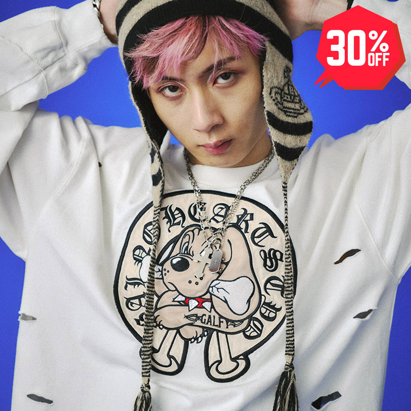バック襟元、バック裾、両袖部分に両袖に百合の紋章を施した存在感ある仕上がり。フロントにはおなじみワンちゃんをアップリケ刺繍でオン。ハードなダメージ加工にサイドスリットの入ったゆったりとしたシルエットがストリートスタイルに大活躍間違いなし。女性にもおすすめのユニセックスアイテムになります。同じ百合の紋章をデザインしたアイテムとのコーディネートもオススメです。