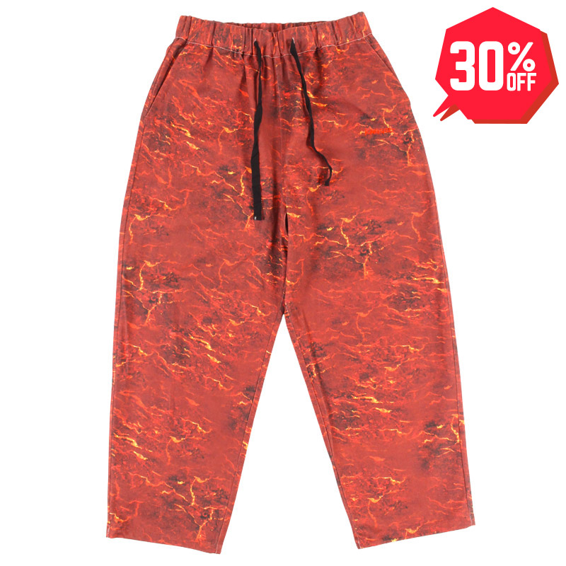 マグマ柄を全面にプリントした存在感抜群のイージーパンツ。
