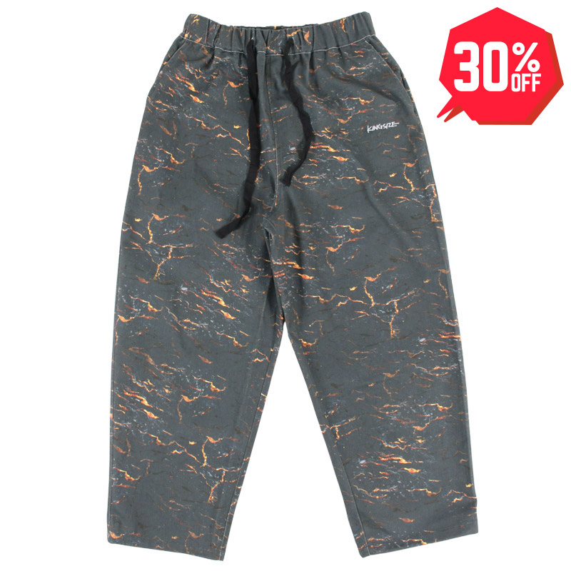 マグマ柄を全面にプリントした存在感抜群のイージーパンツ。
