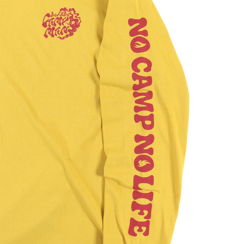知る人ぞ知るCAMPMANである団長NG HEADがデザインしたグラフィックスをバックにオンしたロンTee。スモーキーグリーンのボディに、こだわりのプリントカラーでキャンプはもちろん、アウトドアシーンで大活躍する一枚。フロントにはスモーキーなロゴ、左袖には『NO CAMP NO LIFE』のメッセージが!毛羽立ちが少なくなるように工夫した糸を使用した5.6オンスの生地を使用したスタンダードな一枚。少しオーバーサイズでアウターに、レイヤード(重ね着)でインナーにするのも最適なユニセックスでおすすめの万能アイテム。