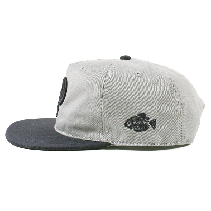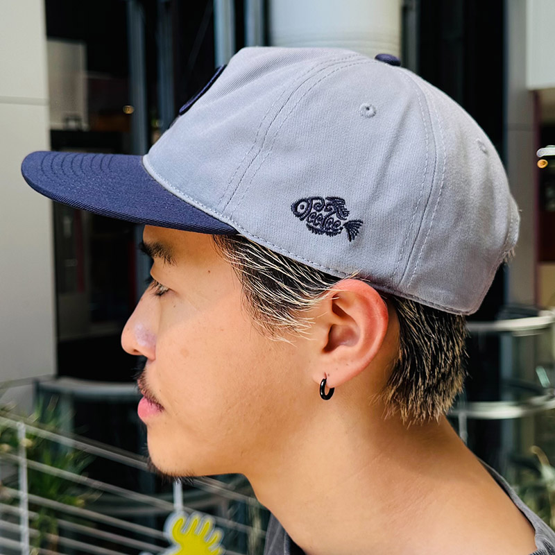 PEE LOGOを立体感ある刺繍でオンしたクラシカルな雰囲気が魅力の5パネルキャップ。サイドにMURASAKI画伯デザインのフィッシュロゴを刺繍しました。軽量でミッドプロファイルなシルエットにフラットバイザーの2トーン仕様で、スタイリングのアクセントに大活躍するユニセックスでおすすめのアイテム。
