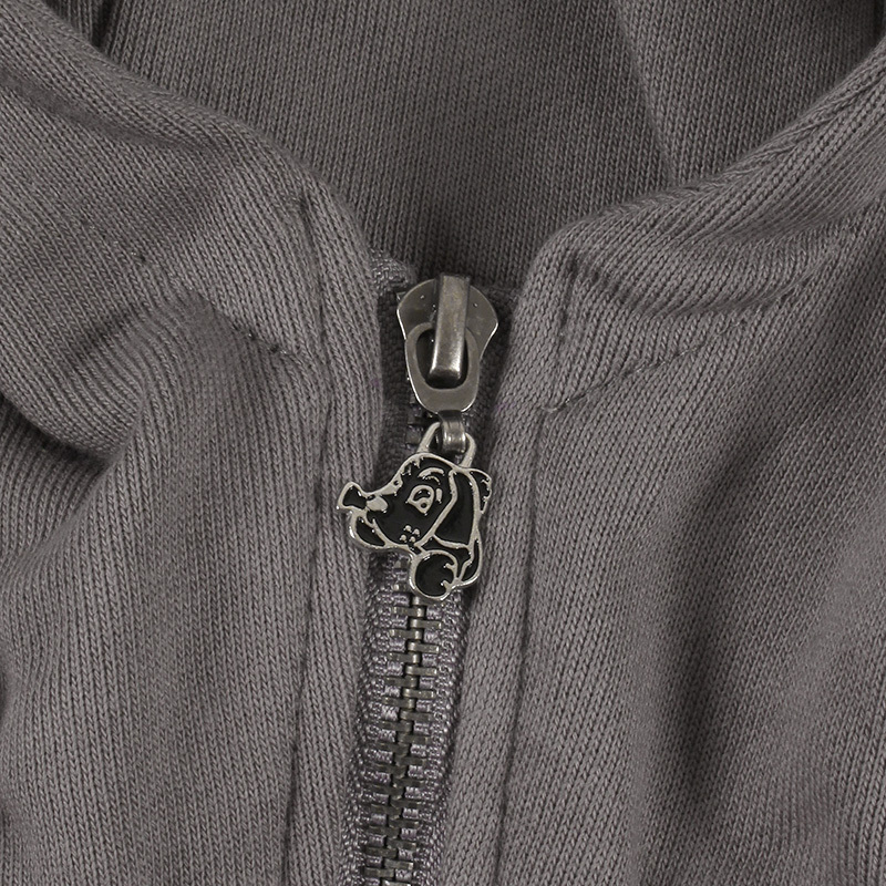 バックにおなじみワンちゃんを大きくデザインしたジップパーカ。フロントにも意味深なGOサインを刺繍しました。白の刺繍糸は蓄光素材で、暗闇で怪しく光ります。ドロップショルダーのラグランスリーブに身幅とアームホールを広く取ったビッグシルエットが特徴的な一枚。さらりとした風合いの裏パイル素材を使用したリラックスして着用いただけます。女性にもおすすめのユニセックスアイテムになります。