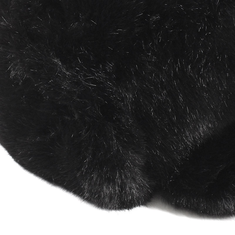 光沢感のある肌触りの良いブラックファー素材が高級感ある仕上がりのトラッパー。程よい毛足の長さでボリューム感のあるデザインで秋冬シーズンに大活躍するアイテム。裏地は中綿入りキルティングで防寒性高く、耳当ては上げても下げても使用できる2WAY仕様。ウィンターシーズンに大活躍するユニセックスでおすすめのアイテムです。
