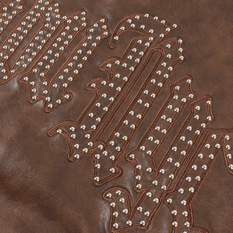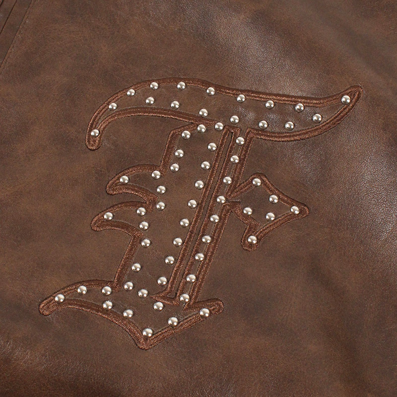FUBU(フブ) “FAUX LEATHER STUDS PATCH JACKET” [FAM-52302 Brown]