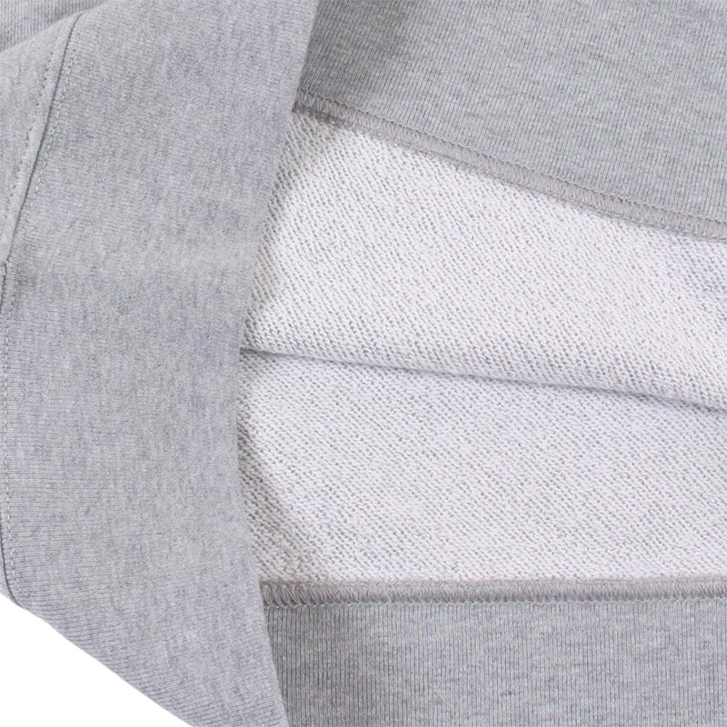 裏パイル、別名「裏毛」。天竺編みを組み合わせた表面は伸縮性がありなめらかな風合い。裏面は裏糸をパイル状に編み込んで浮かせた生地で、タオルのように汗の吸収が良い素材。裏糸は表糸に使用している糸よりあま撚りの太い糸で編み立てているため、肌ざわりが良いのが特徴。