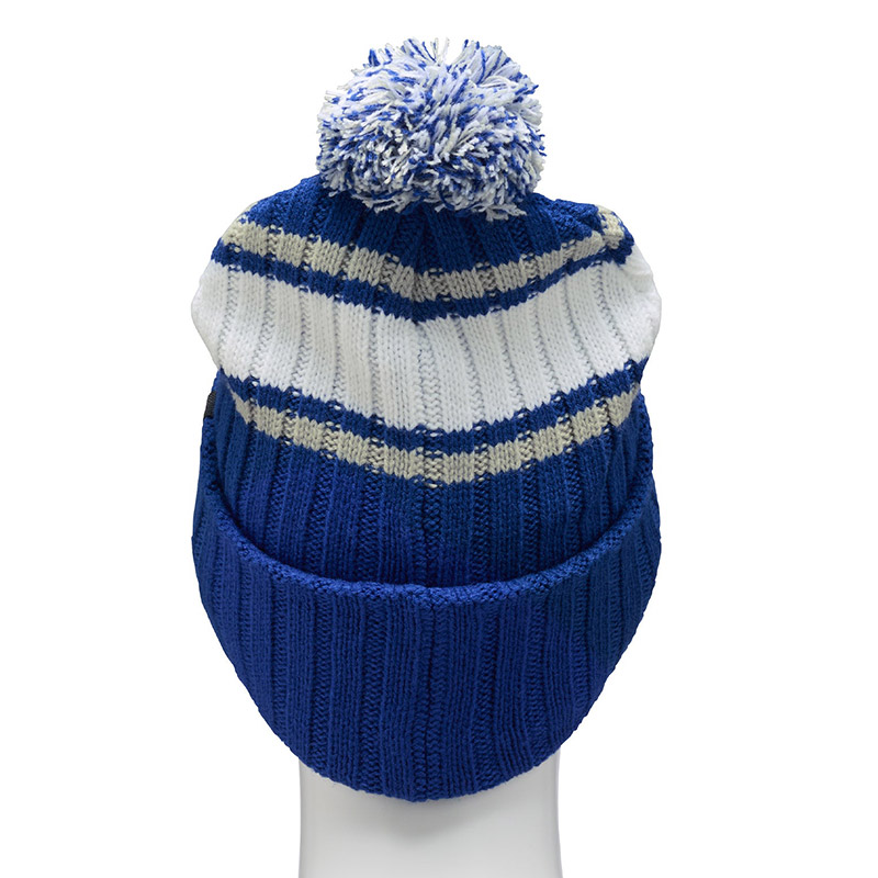 ストライプデザインが特徴のポンポン付きニットキャップ。