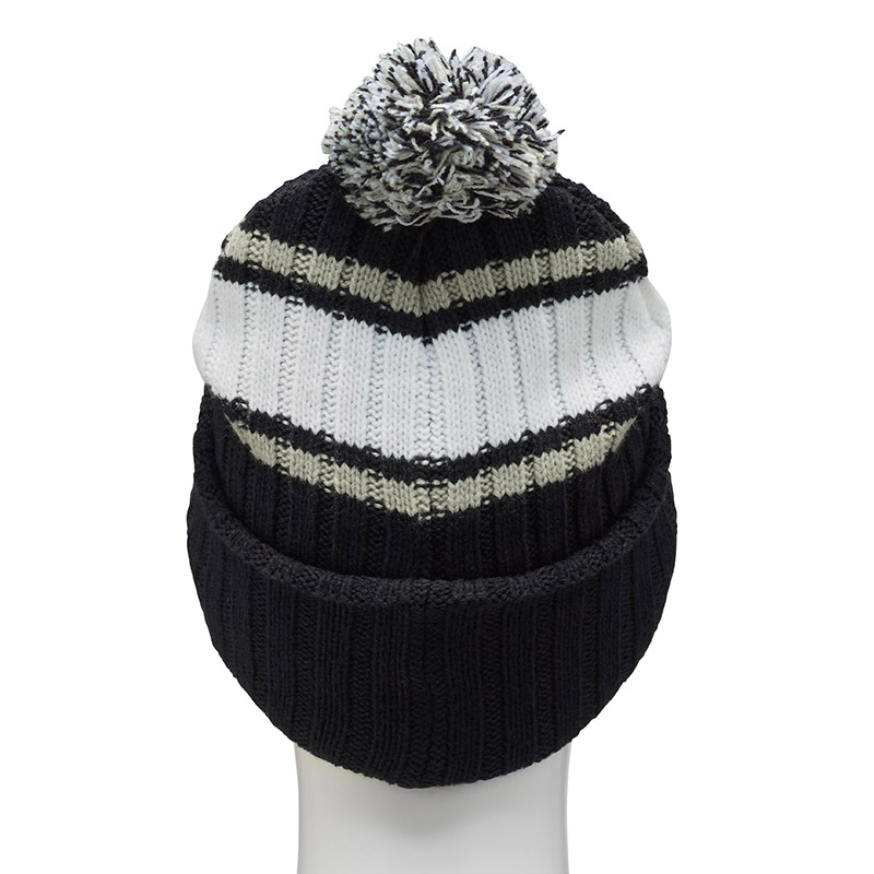 ストライプデザインが特徴のポンポン付きニットキャップ。