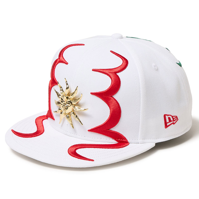 岡本太郎の代表作「太陽の塔」を落とし込んだデザインがインパクト抜群のベースボールキャップ。シルエットはフラットバイザー仕様でストリートの定番であるニューエラを代表するスタイルの59FIFTY。フロントパネルの内側に独自の芯を作ることで型崩れしにくいクラシックなシルエット。