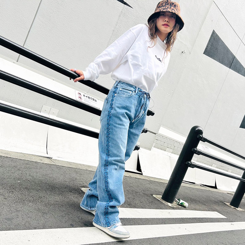 PeeTee. (ピーティー) “SIDELACE DENIM PANTS”