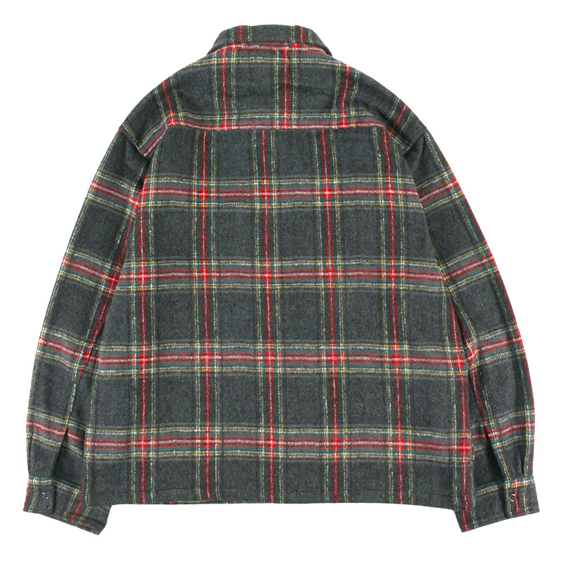 表面に起毛加工を施した、やわらかな風合いと、厚みのあるしっかりとした生地感が特徴のチェックシャツ。裏面はさらりとした風合いでリラックスして着用いただけます。大きめのフラップポケットがアクセントになった、CPO型のシルエットでシャツジャケットとしても使用できる一着。ボタンを留めての着用もちろん、Tシャツやパーカーの上に羽織ったり、インナーとしても使える優秀アイテム。スナップボタンで脱ぎ着しやすく、両サイドにポケットもあり機能性も抜群です。ミリタリーテイストなので、カーゴパンツやチノパンツ、デニムなどと合わせ、様々なスタイリングを楽しめるユニセックスでおすすめのアイテムです。