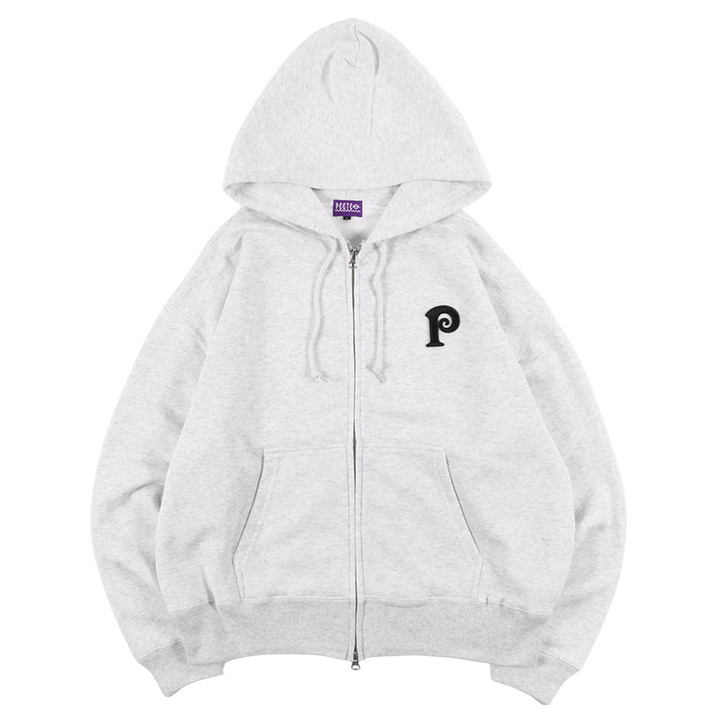胸元にPEE LOGOを刺繍したウォーム感ある裏起毛ジップフード!