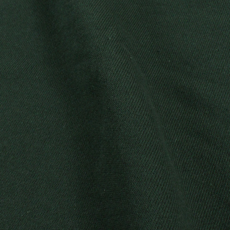 裏パイル、別名「裏毛」。天竺編みを組み合わせた表面は伸縮性がありなめらかな風合い。裏面は裏糸をパイル状に編み込んで浮かせた生地で、タオルのように汗の吸収が良い素材。裏糸は表糸に使用している糸よりあま撚りの太い糸で編み立てているため、肌ざわりが良いのが特徴。