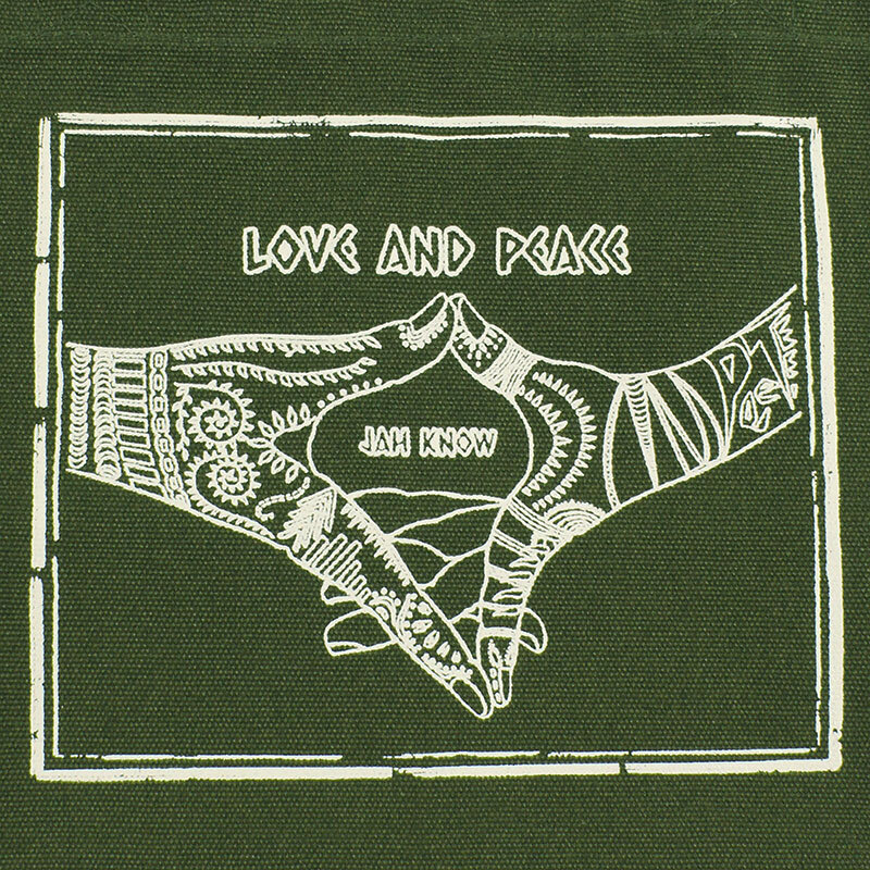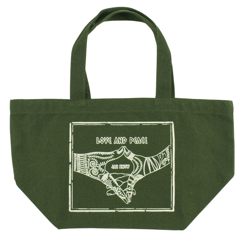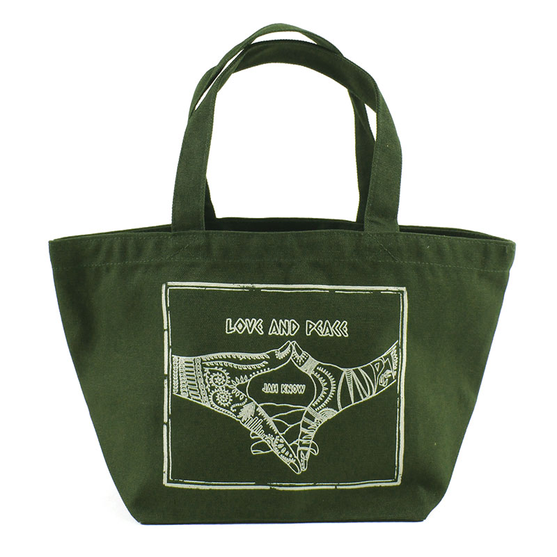 JAHを讃えるラブアンドピースでラスタなハンドサインをデザインしたランチバッグ。11.5オンスのヘビーウェイトのしっかりとした頑丈なキャンバス生地が特徴のアイテム。約7Lの容量で、ちょっとしたおでかけにちょうどいいサイズ感が魅力で様々なシーンで大活躍間違いなし。