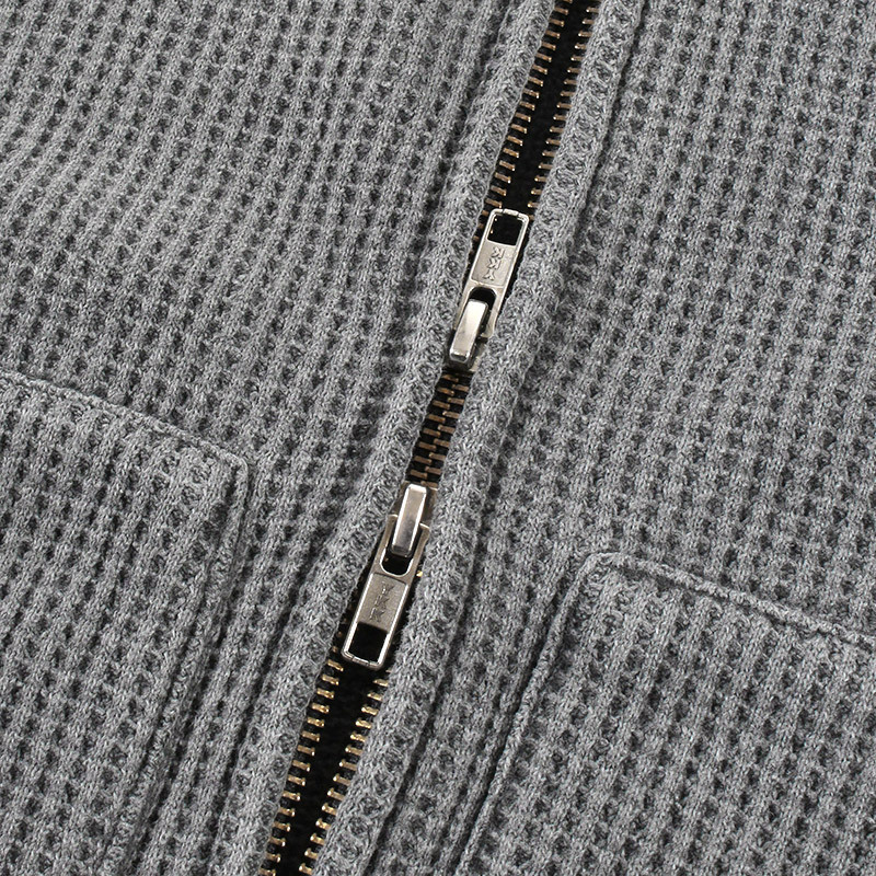 綿100%のワッフル生地とマイクロフリースを圧着した素材を使用したヘビーウェイトのジップフード。