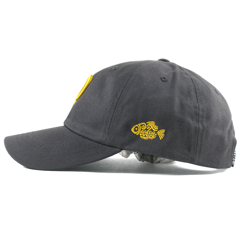 PEE LOGOを立体感ある刺繍でオンしたクラシカルな雰囲気が魅力の6パネルキャップ。サイドにMURASAKI画伯デザインのフィッシュロゴを刺繍しました。フロント部分に芯がなく柔らかな被り心地が魅力。少し浅めでツバが曲げられたカーブバイザー、バックのアジャスターでサイズ調整が可能でスタイリングのアクセントに大活躍するユニセックスでおすすめのアイテム。