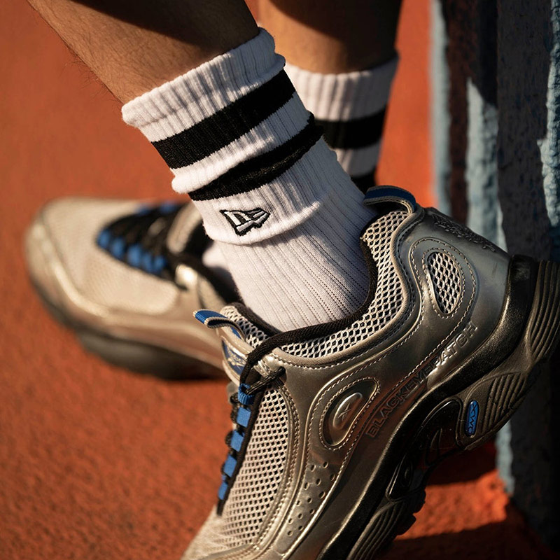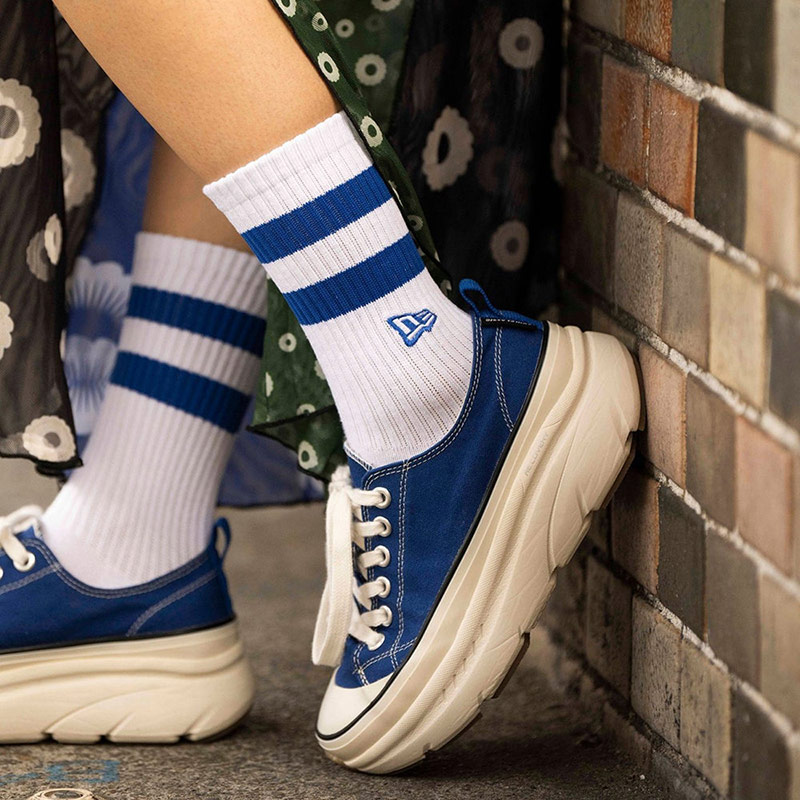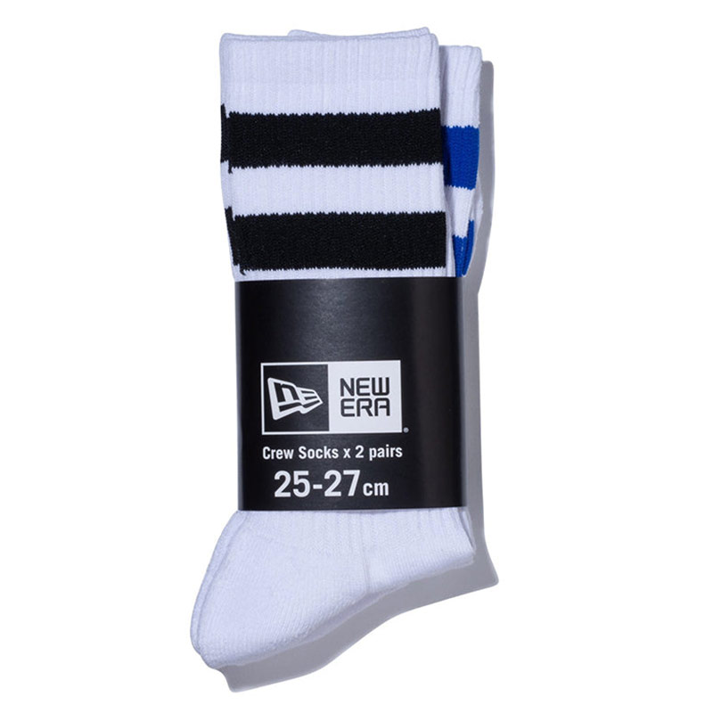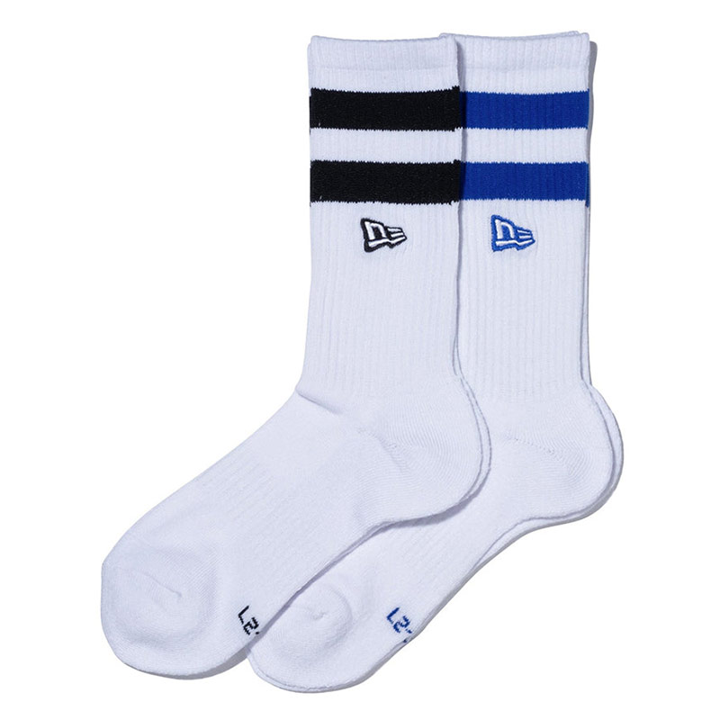 NEWERA(ニューエラ) “ソックス クルー 2ペア ライン フラッグロゴ エンブロイダリー ブラック/ブルー”
