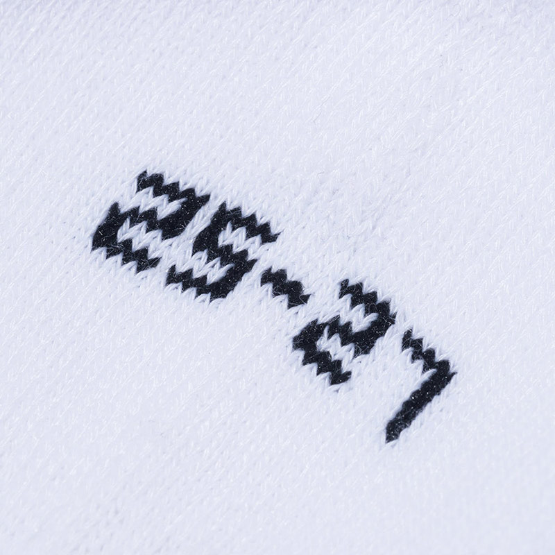 ふくらはぎの真ん中にかかるクルー丈です。ホワイトボディにライン、ロゴカラーが、エンブロイダリーベージュとダークグリーンの2組セット。