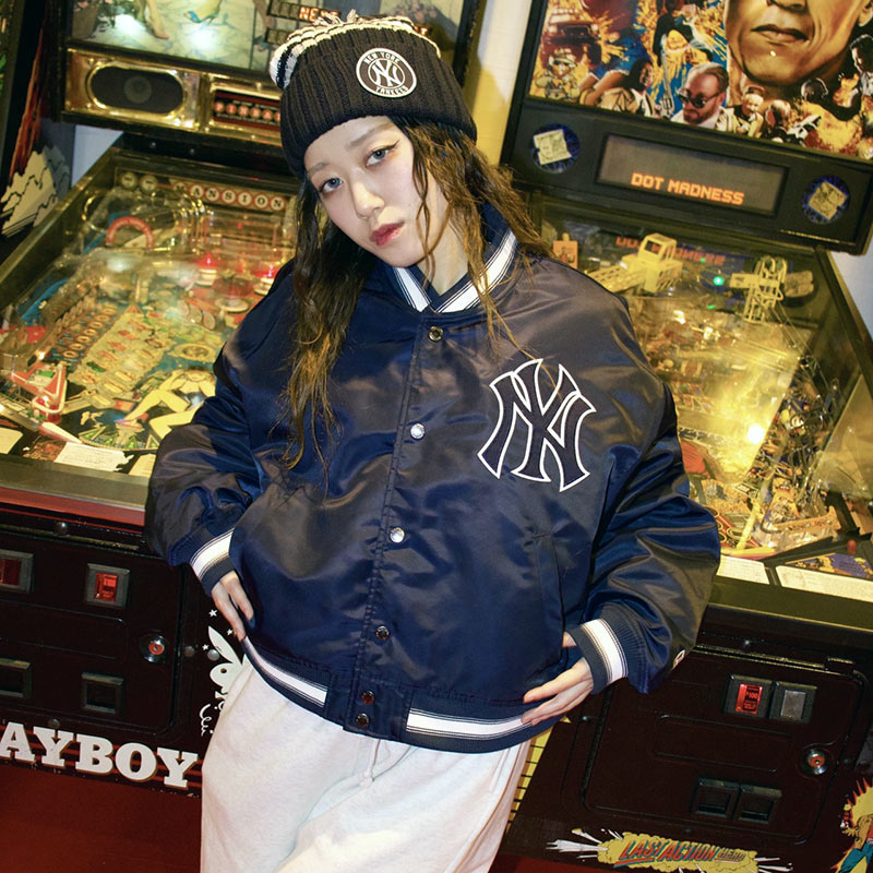 ニューヨーカーのスタイル風のコーディネートにしました!ニット帽のロゴは正面でも斜めでもかわいいです💞