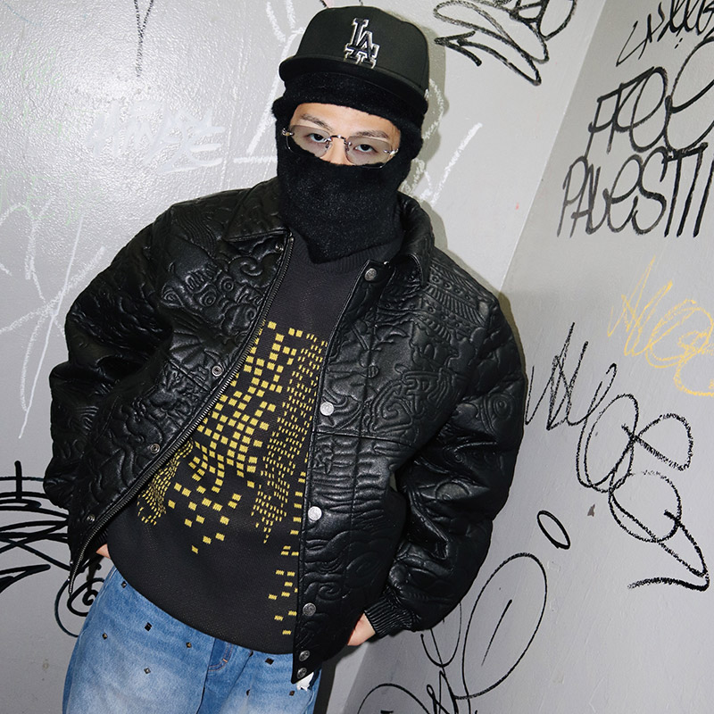 マスク×キャップのコンビでミステリアスな雰囲気を纏った、完璧な“アンダーグラウンド”シルエット。