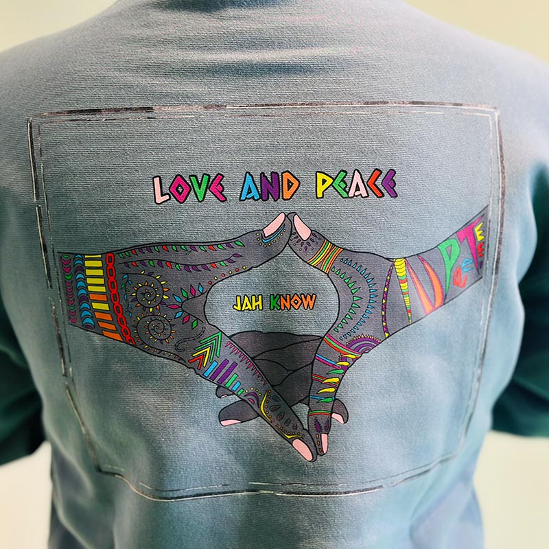 JAHを讃えるラブアンドピースでラスタなハンドサインをバックにデザインしたフーディー。ウォーム感のある12オンスのヘビーウェイトの裏起毛素材を使用した一着。しっかりした強度のあるリブとトレンド感のあるざっくりシルエットが特長。オープンエンド糸の持つ独特の風合いにより、味のある「ムラ感」と「ザラ感」を楽しむことができる仕上がりで着込むほどにエイジングを楽しめます。身頃の生地目は横取り、脇下はリブ生地のサイドパネルのリバースウィーブ仕様。アメリカンクラシックな装いのストリートスタイルにマストなユニセックスでおすすめのアイテム。