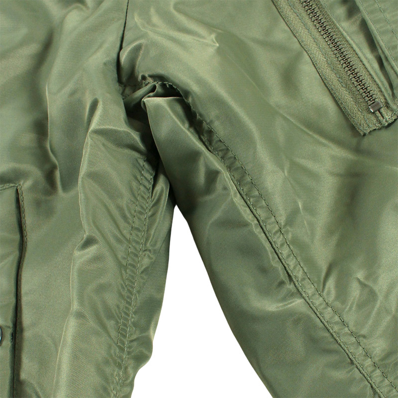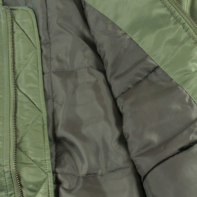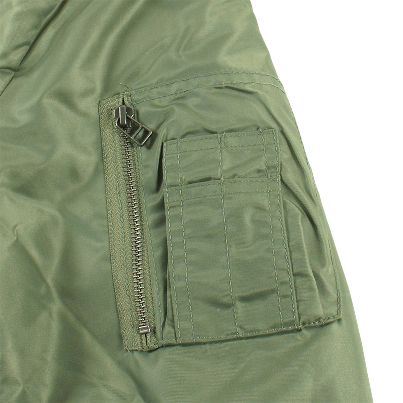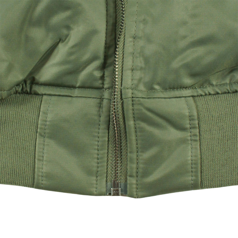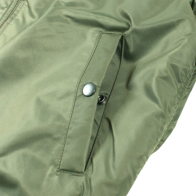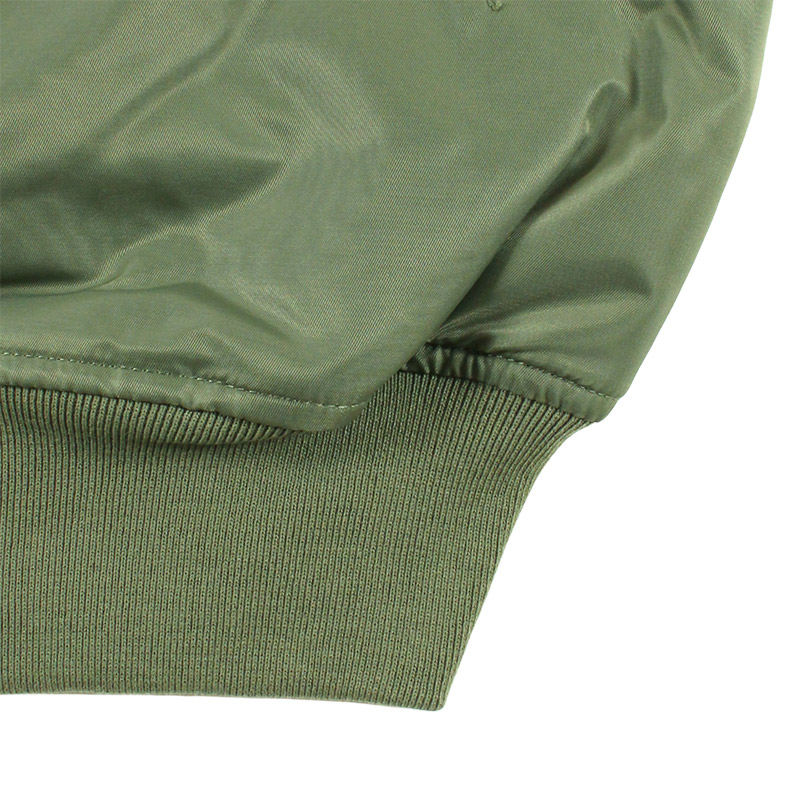 表地はシワになりにくてハリ感のあるナイロンツイル素材を使用。90年代を意識したボリューム感のあるコクーンシルエットに中綿入りで、デイリーユースに大活躍する一着。左胸にワンポイントのロゴ刺繍を施しました。フロントジップの内側には、冷風の侵入を防ぐストームフラップを装備。衿部分や袖口と裾口はフィット感のあるリブ仕様、パッカリングの入った立体感のある縫製、左袖のユーティリティポケットなどディテールにこだわった本格仕様のフライトジャケットです。ゆったりとしたインナーも着込めるサイジングでロングシーズン大活躍するユニセックスアイテムです。