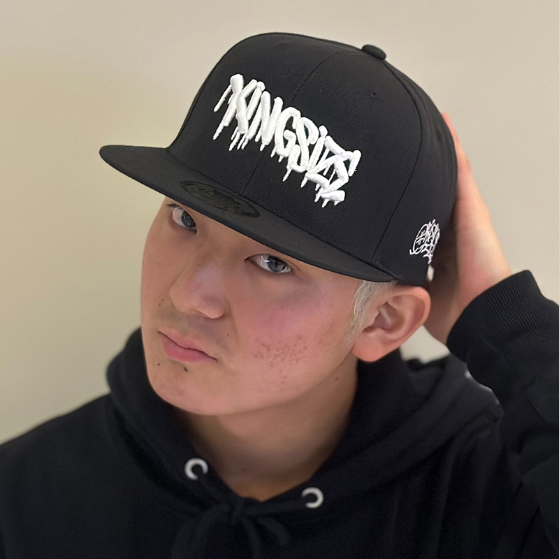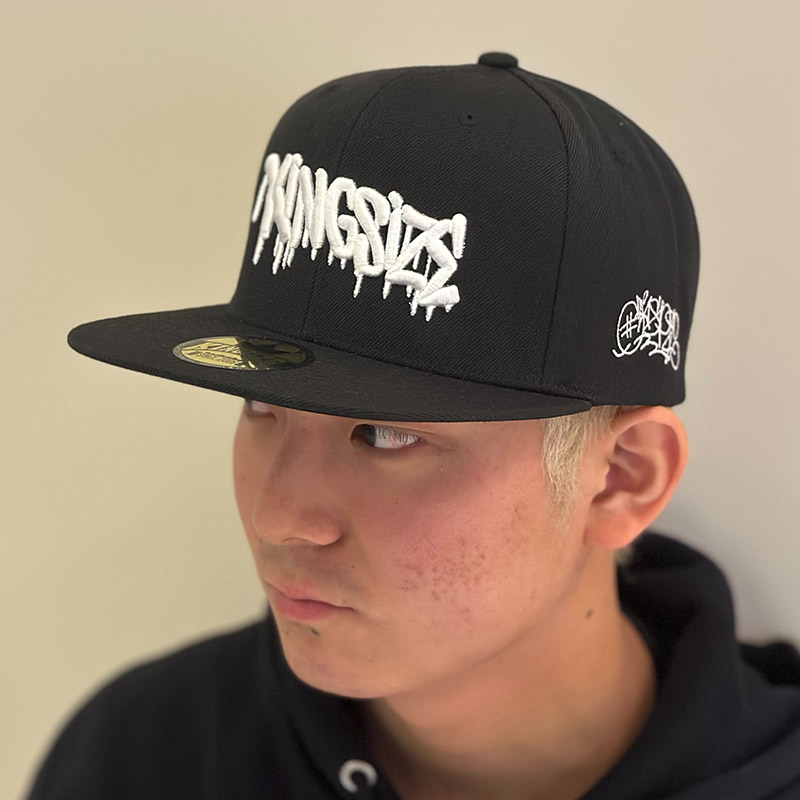 キングサイズではお馴染みの世界を代表するグラフィティアーティスト『キャスパー』デザインのドリップロゴを立体刺しゅうでオンしたスナップバック。サイドにキャスパーロゴを刺繍しました。フラットバイザーのベーシックなフォルムがストリートスタイルに大活躍するアイテム。スナップバック仕様でサイズ調節でき男女兼用でおすすめです。