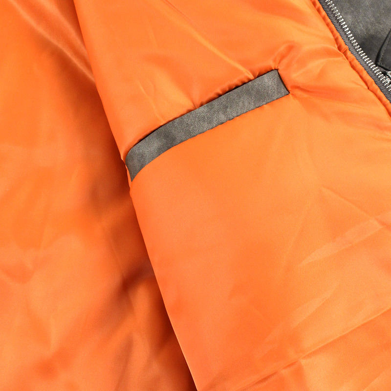MA-1ミリタリージャケットのディテールを再現したパデッドブルゾン。擦れたフェード感のある合皮レザー生地を使用したヴィンテージライクな風合いが魅力の一着。中綿入りで保温性が高く身体を優しく包み込む快適な着心地に。左袖にユーティリティーポケット、内ポケットも装備。裏地のセーフティオレンジがミリタリーライクな仕上がり。ゆったりとした身巾やアームホール、やや長めに設定した袖丈など、ヌケ感のあるルーズなシルエットがユニセックスでおすすめのアイテムです。
