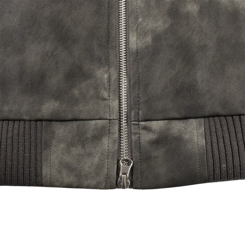 ゆったりとしたシルエットが特徴的なPUレザーのボンバージャケット。