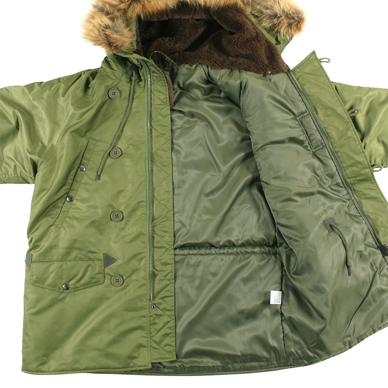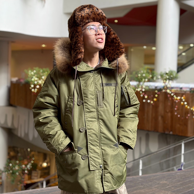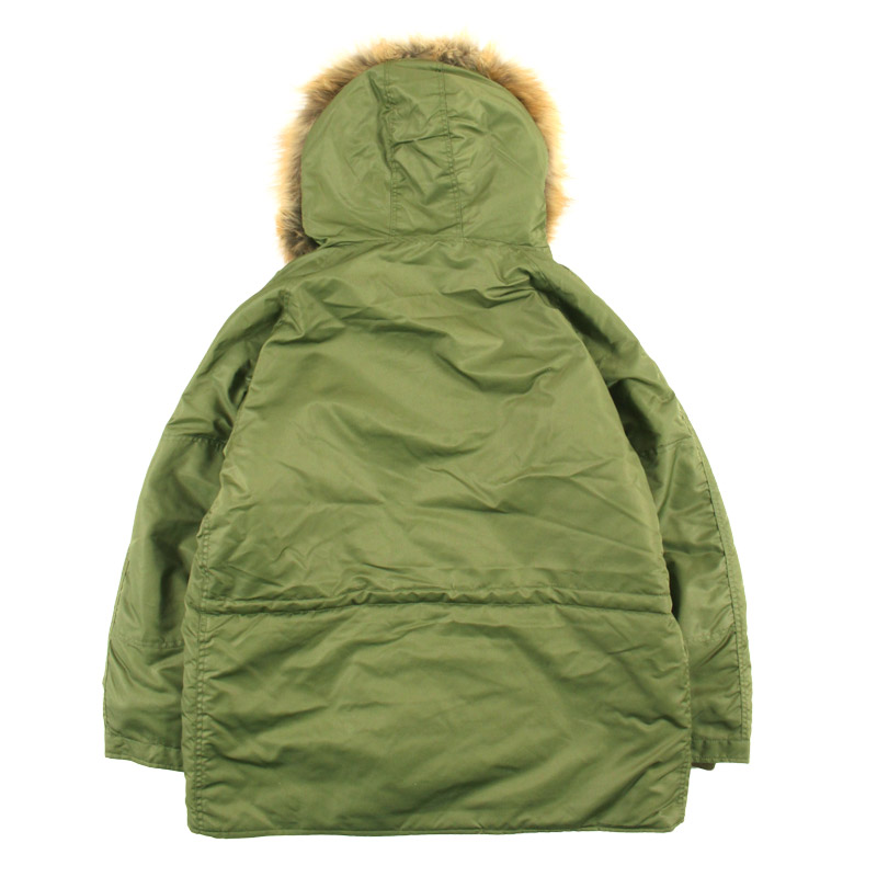 第二次世界大戦中に開発、採用されたアメリカ空軍の名作「N-3B」。着丈の長い極寒地用のフライトジャケットをタウンユースにアレンジした一着。フード部分のファーは着脱可能でフード裏はボア仕様、二重の前立て(ジッパーとボタン)、ファー部分はコヨーテファーを採用しリアル感を演出、サイド上部のハンドウォーマーポケットや左袖のユーティリティポケットなど、細部までディティールにこだわった仕上がり。シャツやスウェット、ニットなど幅広いアイテムとのコーディネートを楽しめるユニセックスでオススメのアイテムです。