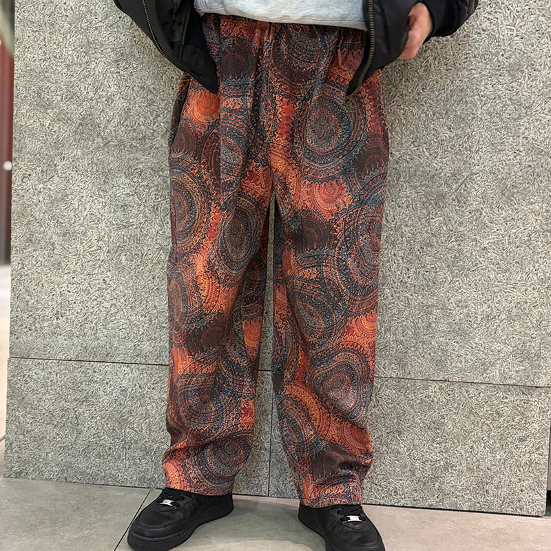 無骨なアウターに、存在感抜群のペイズリー柄パンツを合わせて、都会的ストリートにエッジをプラス。