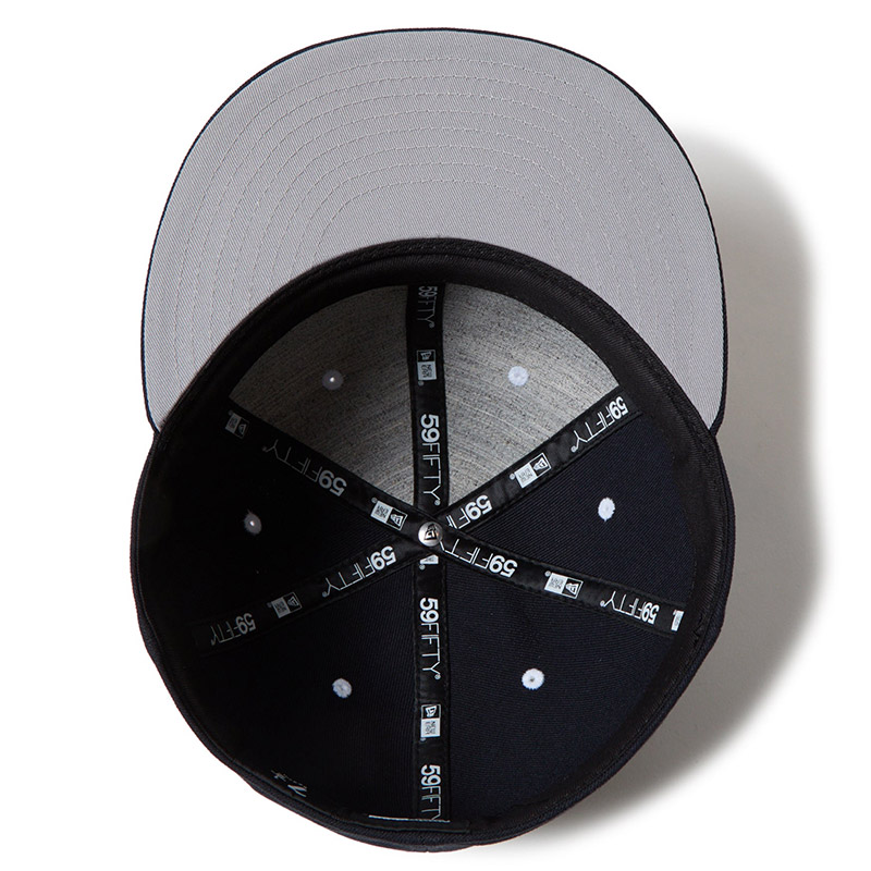 シルエットはフロントパネル内側の芯を取り除いたソフトバックラム仕様の59FIFTY。柔らかい被り心地です。サイズ調整のない仕様で、約1cm刻みのサイズ展開。頭の小さい方から大きな方まで、ジャストサイズで被ることができます。また、アジャスターがないので、リアのシルエットが美しく、頭の形が綺麗に見えます。