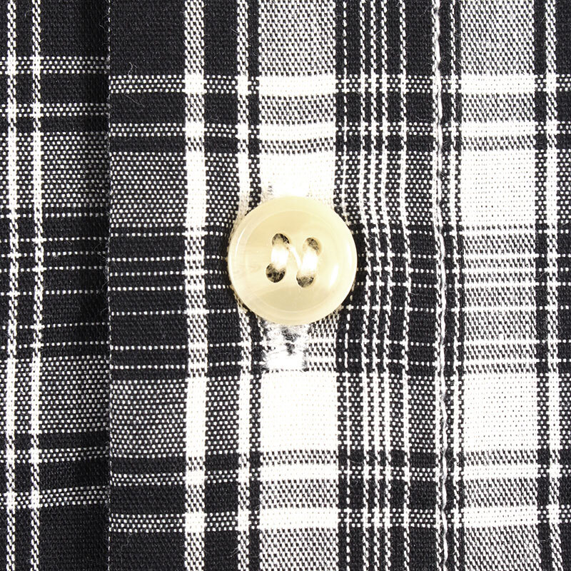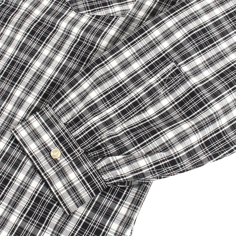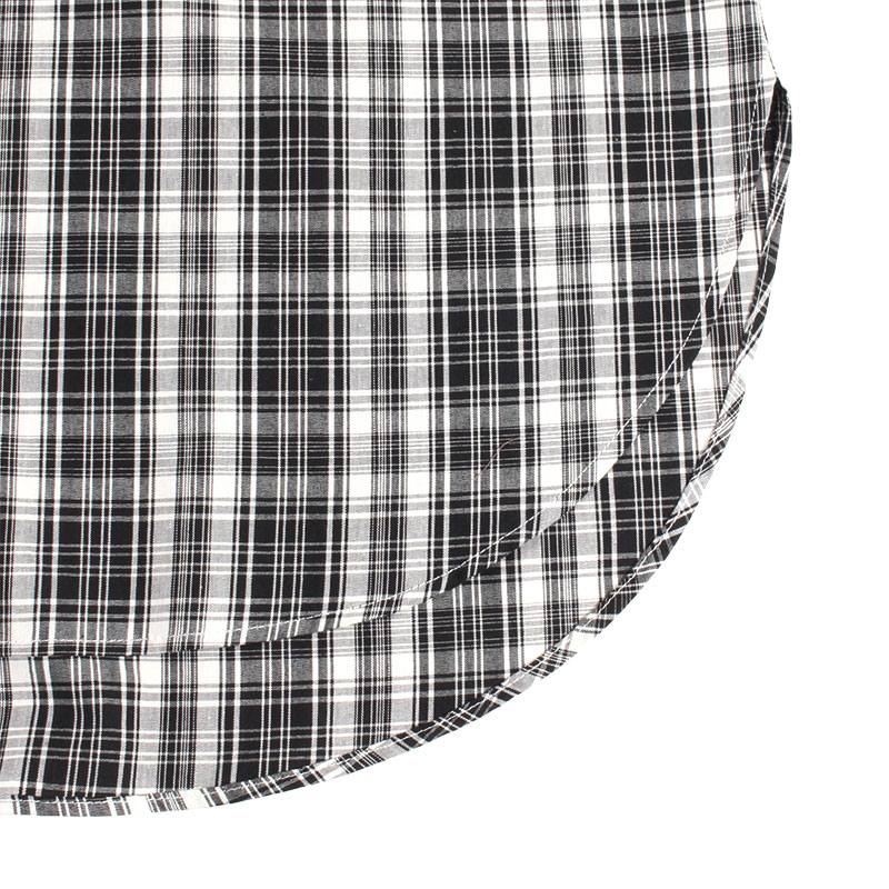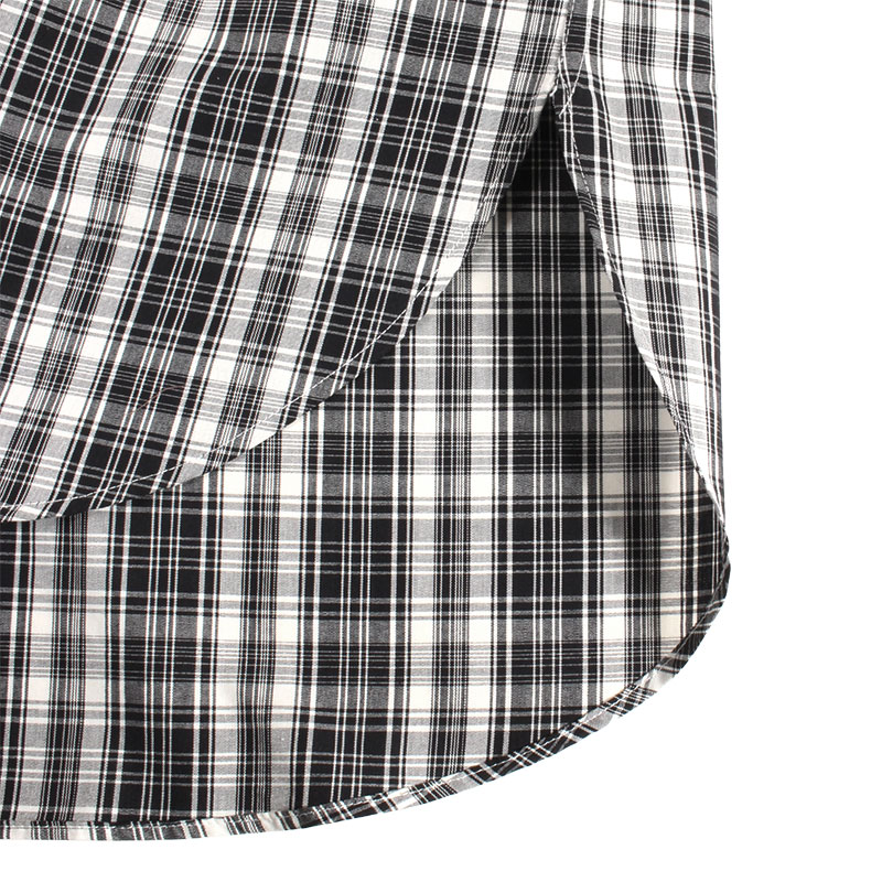 綿100%の薄手のチェック生地を使用した裾脇のカッティングが特徴的なロングスリーブシャツ。